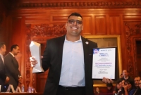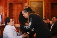 El evento contó con la presencia de autoridades estatales y municipales, entre ellas el secretario de Educación y Deporte, Francisco Hugo Gutiérrez, el presidente del Congreso, Guillermo Patricio Ramírez, la presidenta del Tribunal Superior de Justicia, Marcela Herrera, y el alcalde de Chihuahua, Marco Bonilla, así como del marchista olímpico y ganador del PED 2024, Andrés Olivas Núñez.