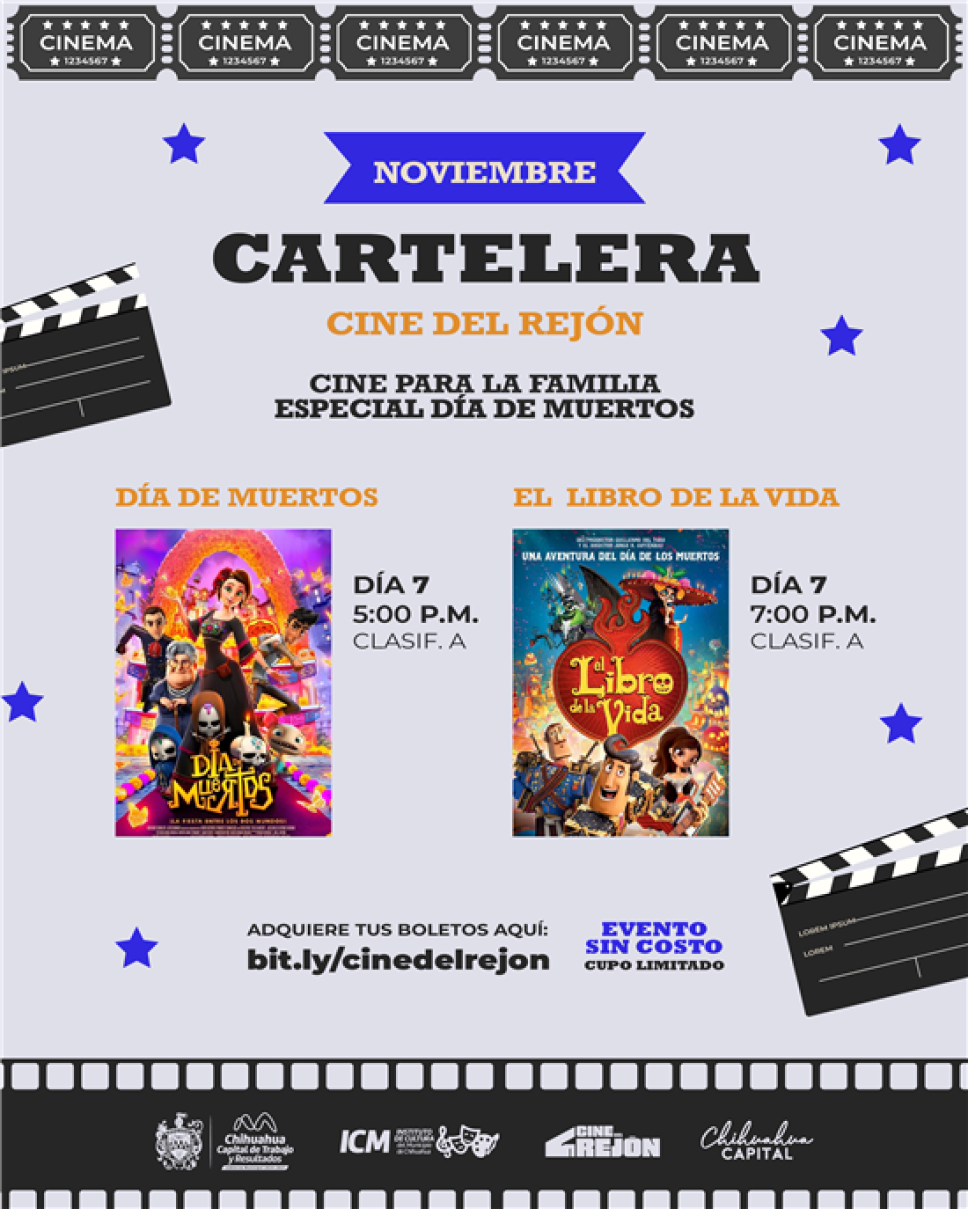El Gobierno Municipal, a través de su Instituto de Cultura, ha preparado una cartelera especial de noviembre para el Cine del Rejón, manteniendo viva la atmósfera de la reciente celebración del Día de Muertos con proyecciones alusivas a la memoria y las raíces.