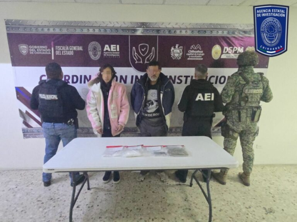 Derivado de un cateo efectuado el martes 13 de enero en un domicilio ubicado en la colonia Unidad Proletaria, en la ciudad de Chihuahua, autoridades detuvieron a dos personas en flagrancia por delitos contra la salud.