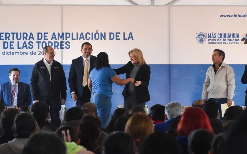 La gobernadora Maru Campos encabezó en Ciudad Juárez la inauguración de la prolongación de la avenida de Las Torres, un proyecto que conecta el bulevar Manuel Talamás Camandari con la calle Yepómera, lo que permitirá reducir tiempos de traslado y agilizar la circulación vehicular.