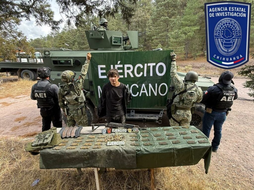 Por otro lado, en el **municipio de Guadalupe y Calvo**, una Célula de la Base de Operación Interinstitucional (BOI) detuvo en flagrancia a Luis Martín V.N., de 23 años de edad, por el delito de portación ilegal de arma de fuego.
