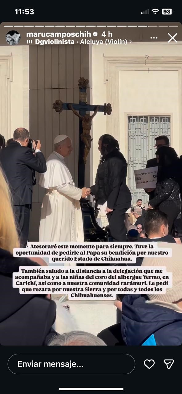 Al término de la audiencia, la mandataria estatal expresó que recibió una bendición que jamás olvidará al poder acercarse al Pontífice, hablarle brevemente sobre Chihuahua y la delegación rarámuri presente en Roma, además de pedir sus oraciones por todas las familias del estado.