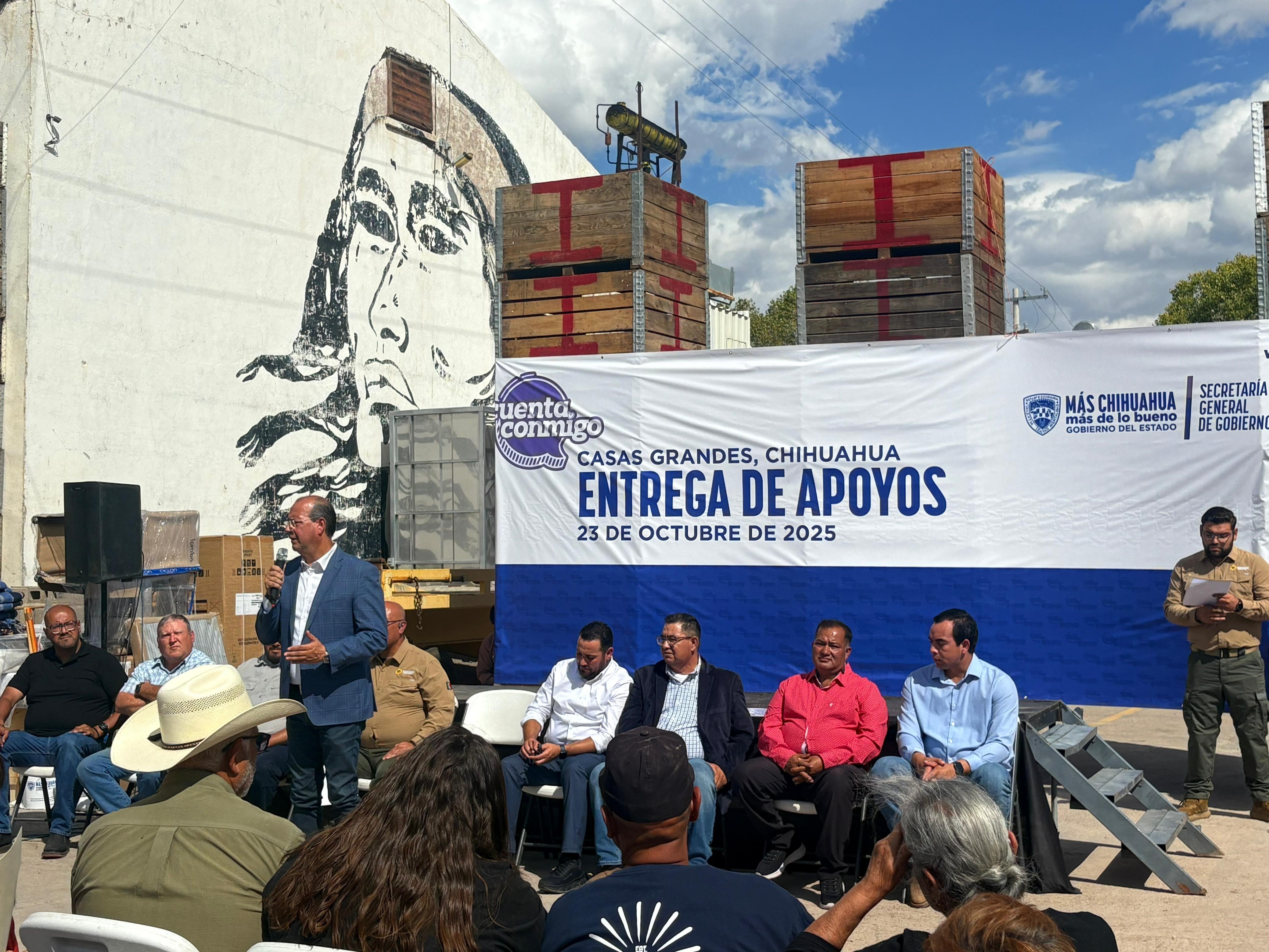 Gobierno de Chihuahua entrega apoyos esenciales a 174 familias afectadas por lluvias en Casas Grandes.