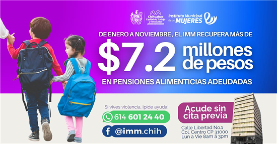 Las personas que requieran acompañamiento legal gratuito en materia familiar pueden acudir al IMM, ubicado en el cuarto piso del Edificio Libertad, junto al Congreso del Estado, de lunes a viernes de 8:00 de la mañana a 3:00 de la tarde, sin necesidad de cita previa, o bien comunicarse vía WhatsApp al 614-601-24-40.