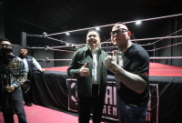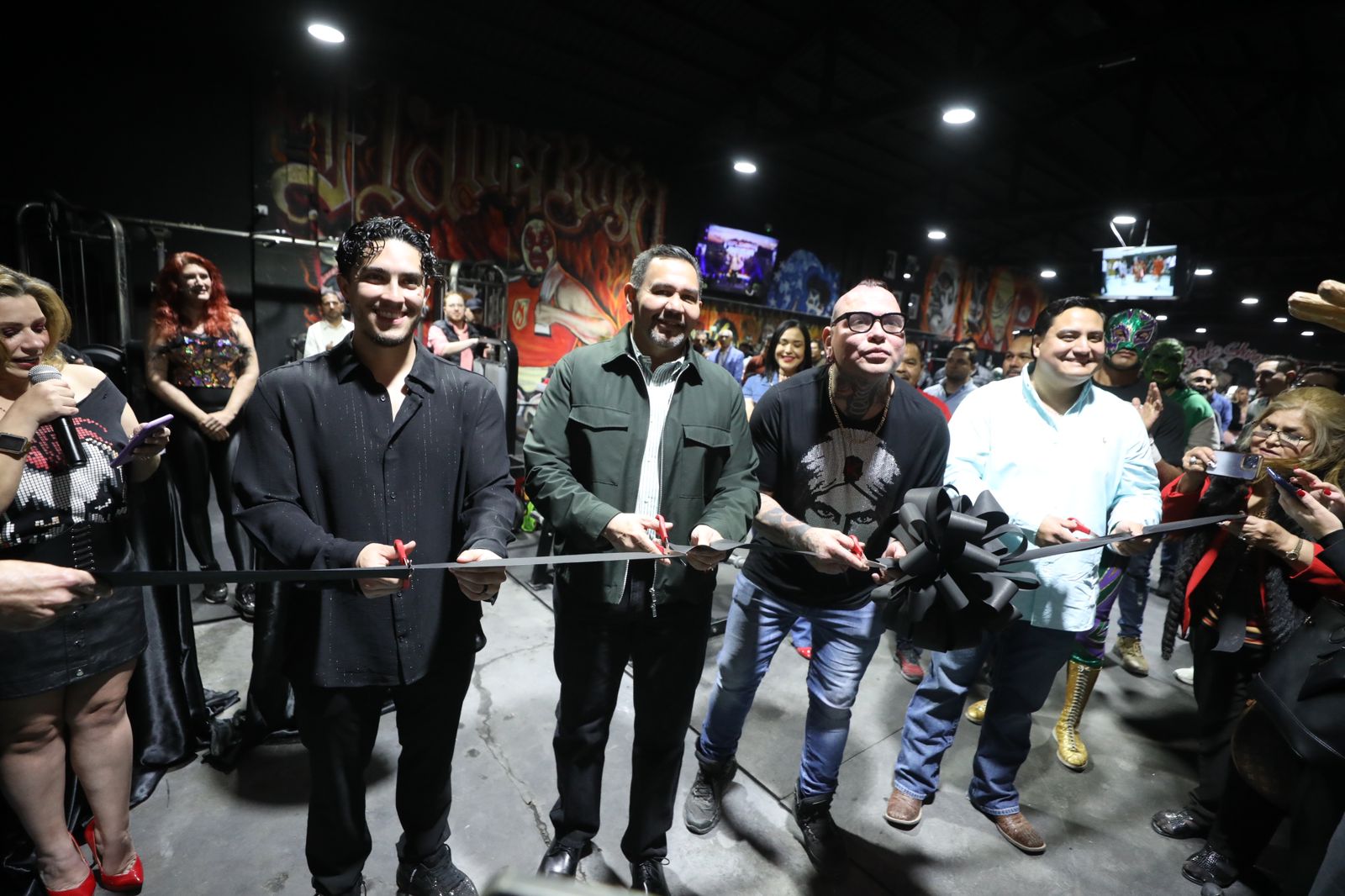 El acto protocolario incluyó el corte de listón, en el que también participó Saúl Gómez, socio del gimnasio. Entre los asistentes estuvieron reconocidos luchadores como "El Avispón Verde", "El Aviador" y "Rosi Solís".