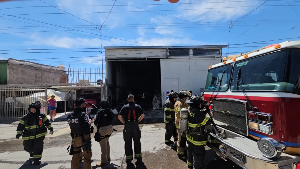 Elementos de la Policía Estatal, fueron los primeros en llegar y auxiliar en el incidente mientras la mujer está siendo valorada por paramédicos de la Policía Estatal para ver si trasladan o no a un hospital se desconoce que originó el fuego dentro de la bodega.