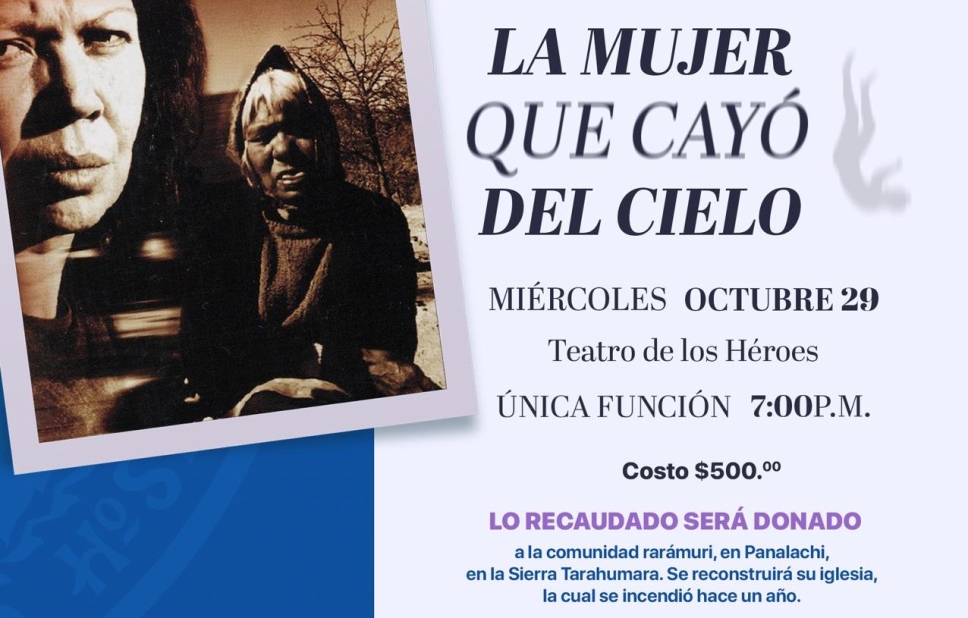 El Teatro de los Héroes se convierte esta semana en el escenario de una noble causa. La reconocida actriz internacional Luisa Huertas estelarizará la obra “La mujer que cayó del cielo” este miércoles 29 de octubre a las 19:00 horas, con el objetivo de recaudar fondos para la reconstrucción de la iglesia del Sagrado Corazón de Jesús, en Panalachi, Bocoyna.