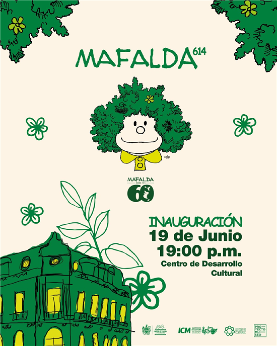 Atención, amantes de la cultura y la reflexión! El Gobierno Municipal de Chihuahua, a través del Instituto de Cultura del Municipio, tiene el honor de invitar a la inauguración de la exposición internacional "Mafalda 614". Por primera vez, esta entrañable muestra, que rinde homenaje a la icónica historieta del caricaturista argentino Quino, llega a la capital chihuahuense.