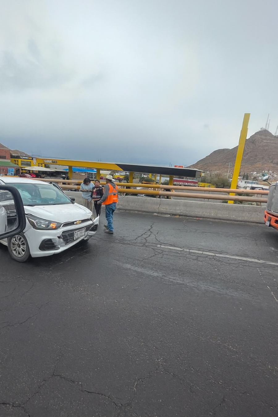 El siniestro se produjo cuando el pavimento, reblandecido por la lluvia y los residuos de aceite, perdió adherencia, provocando que la pesada unidad no pudiera frenar a tiempo. Aunque el vehículo sedán quedó con daños materiales de consideración tras el impacto, los cuerpos de emergencia confirmaron que no hubo personas heridas de gravedad, quedando el saldo únicamente en daños materiales.