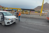 Pavimento mojado provoca fuerte choque entre tráiler y sedán