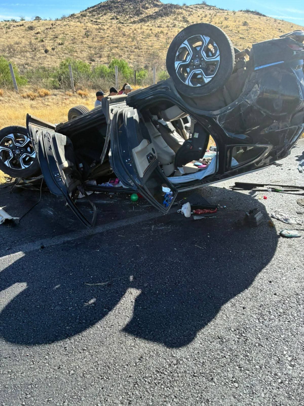 Esta mañana se registró una volcadura sobre el kilómetro 189 de la carretera Delicias-Chihuahua, en el que una camioneta Honda CV-R de color negro habría volcado por causas desconocidas.