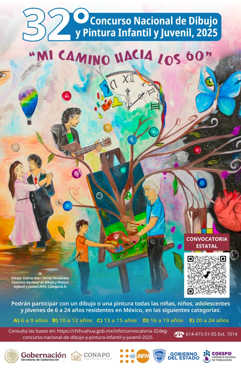 El Consejo Estatal de Población (Coespo) ha lanzado una invitación creativa y profunda a niñas, niños, adolescentes y jóvenes de 6 a 24 años para participar en la Fase Estatal del 32° Concurso Nacional de Dibujo y Pintura Infantil y Juvenil 2025. El certamen, que busca fomentar la reflexión sobre el futuro personal y la salud, se titula: “Mi camino hacia los 60, ¿Qué tenemos que hacer desde ahora para llegar activas/os y saludables a los 60 años?"