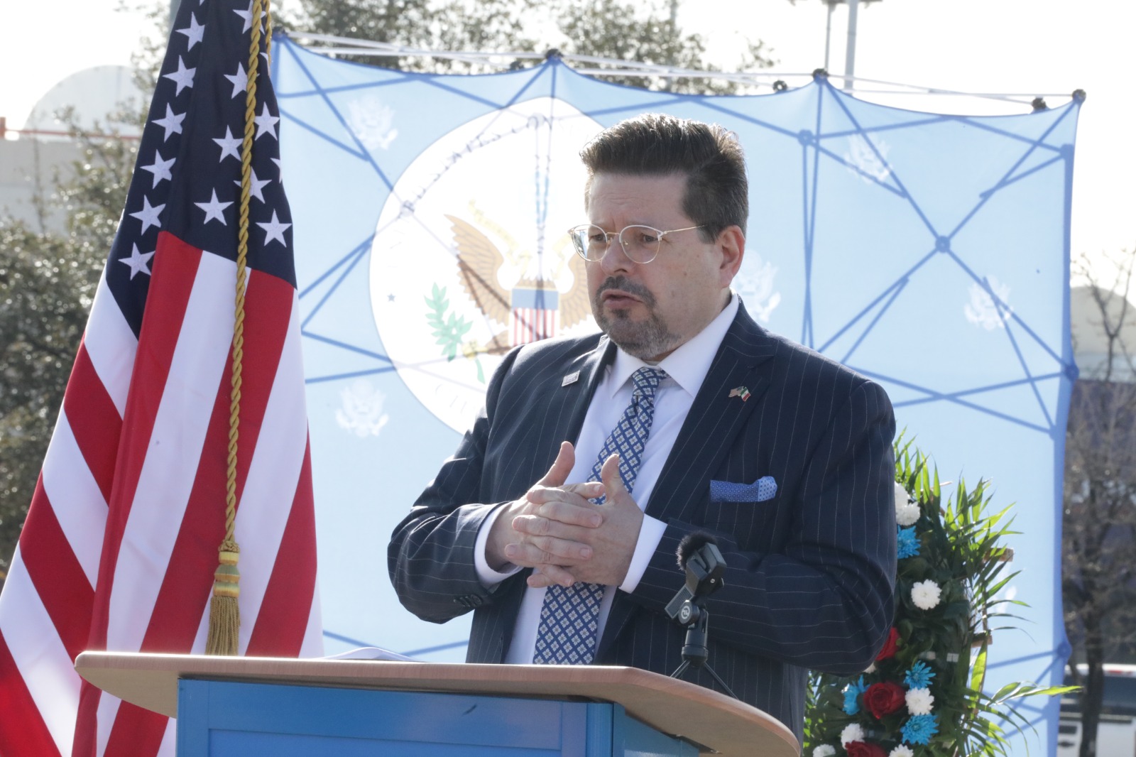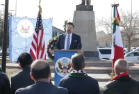 El funcionario felicitó al Consulado por llevar a cabo esta primera ceremonia del Día de los Presidentes en la frontera y reiteró que el Gobierno Municipal mantendrá coordinación permanente con la representación diplomática para impulsar acciones conjuntas que fortalezcan el desarrollo y la cooperación binacional en beneficio de la comunidad juarense.