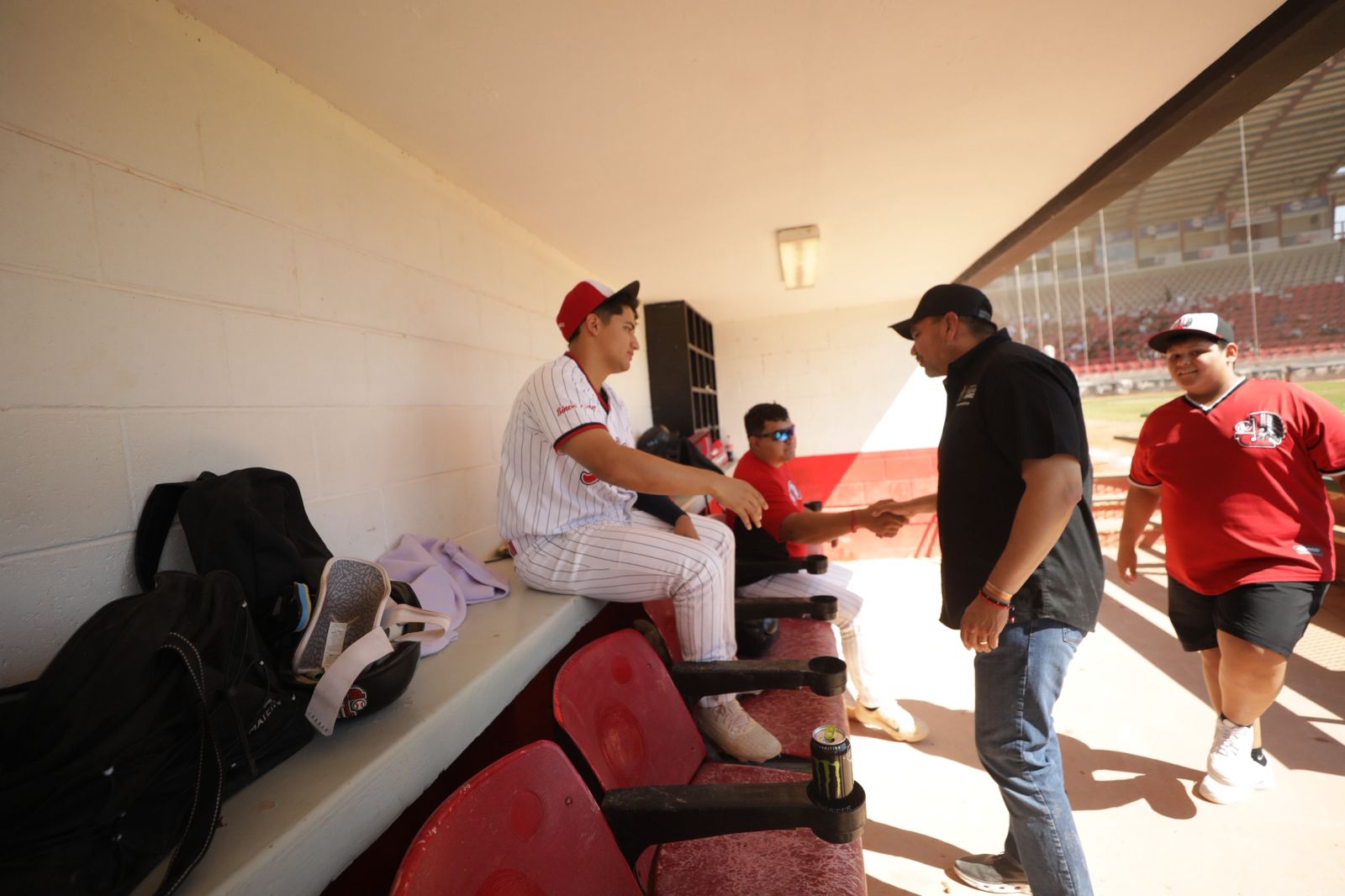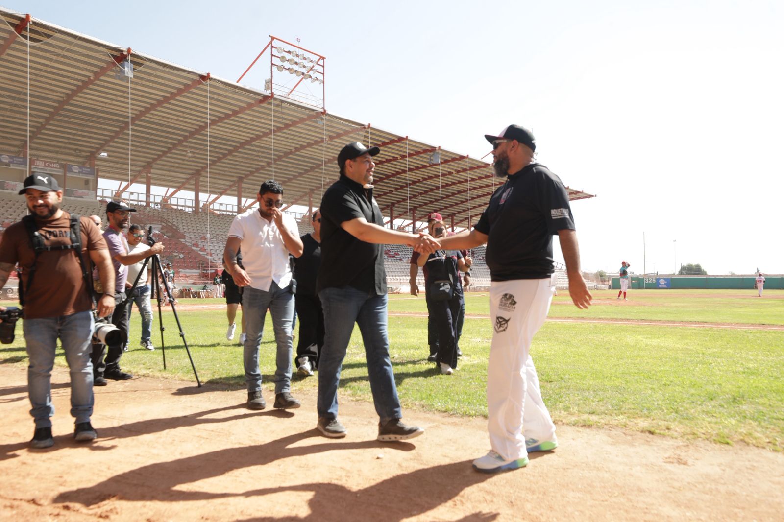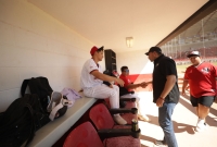 Posteriormente, el alcalde juarense se dirigió a la banca de los Indios. Allí, estrechó la mano de jugadores y cuerpo técnico, reconociéndolos por su memorable victoria en la Liga Estatal. A la novena indígena les transmitió el sentir de la ciudad: Juárez está muy contenta por su logro y los apoyará incondicionalmente en la próxima temporada.