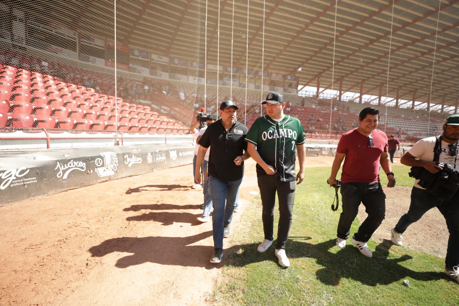 El Estadio Juárez de Béisbol fue el escenario de un encuentro que fue más allá del deporte: sirvió de preparativo para los jugadores y fortaleció lazos entre municipios. El Presidente Municipal, Cruz Pérez Cuéllar, acudió al juego de pretemporada entre los Indios de Juárez y la Selección de Ocampo, Chihuahua, donde reiteró su felicitación al equipo aborigen por haber conquistado recientemente el campeonato de la Liga Estatal de Béisbol.