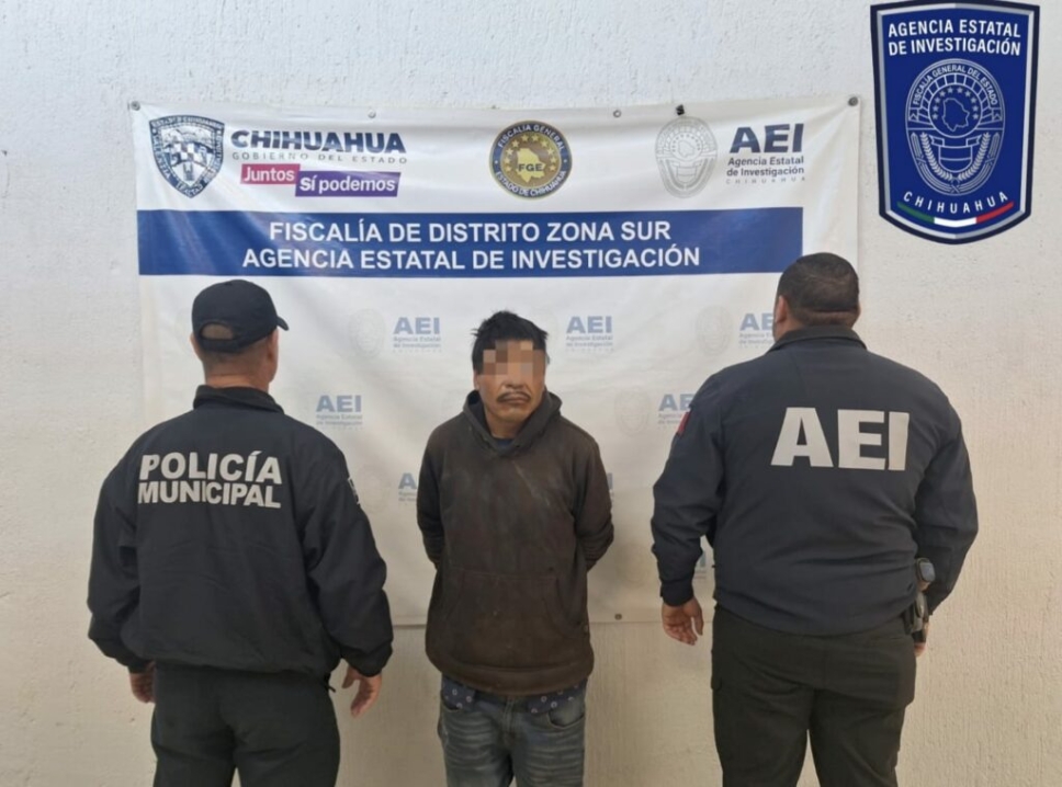 Elementos de la Agencia Estatal de Investigación (AEI), en coordinación con Policías Municipales de Parral, detuvieron a Santiago H. F., de 45 años de edad, quien contaba con una orden de aprehensión por el delito de violencia familiar.