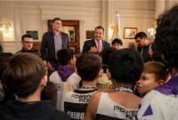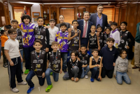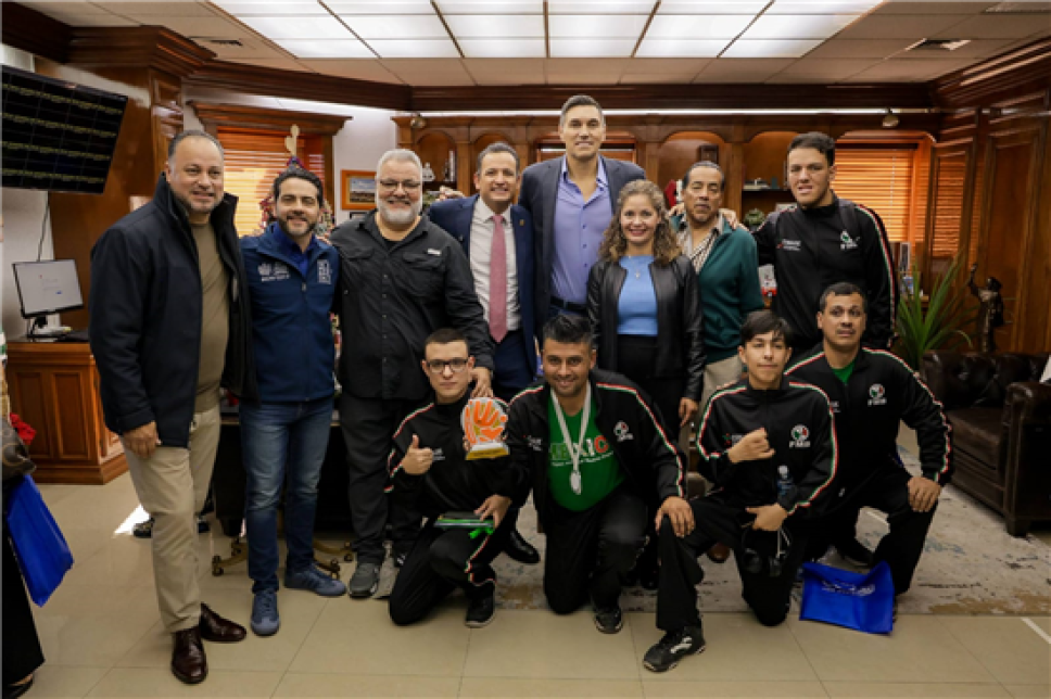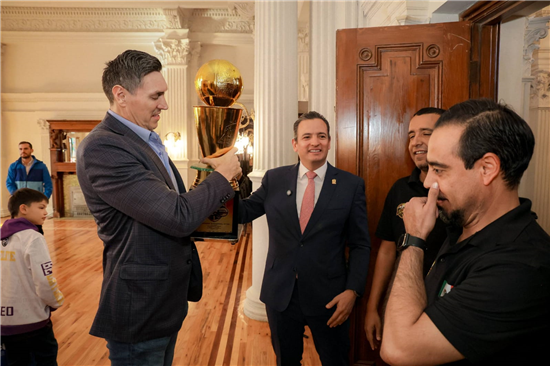 Niños y jóvenes deportistas de equipos representativos de Chihuahua fueron recibidos en la Presidencia Municipal por el alcalde Marco Bonilla, quien les preparó una sorpresa especial: la visita del ex jugador de la NBA, el chihuahuense Eduardo Nájera.