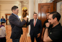 Marco Bonilla recibe a jóvenes atletas y los sorprende con la presencia de Eduardo Nájera.