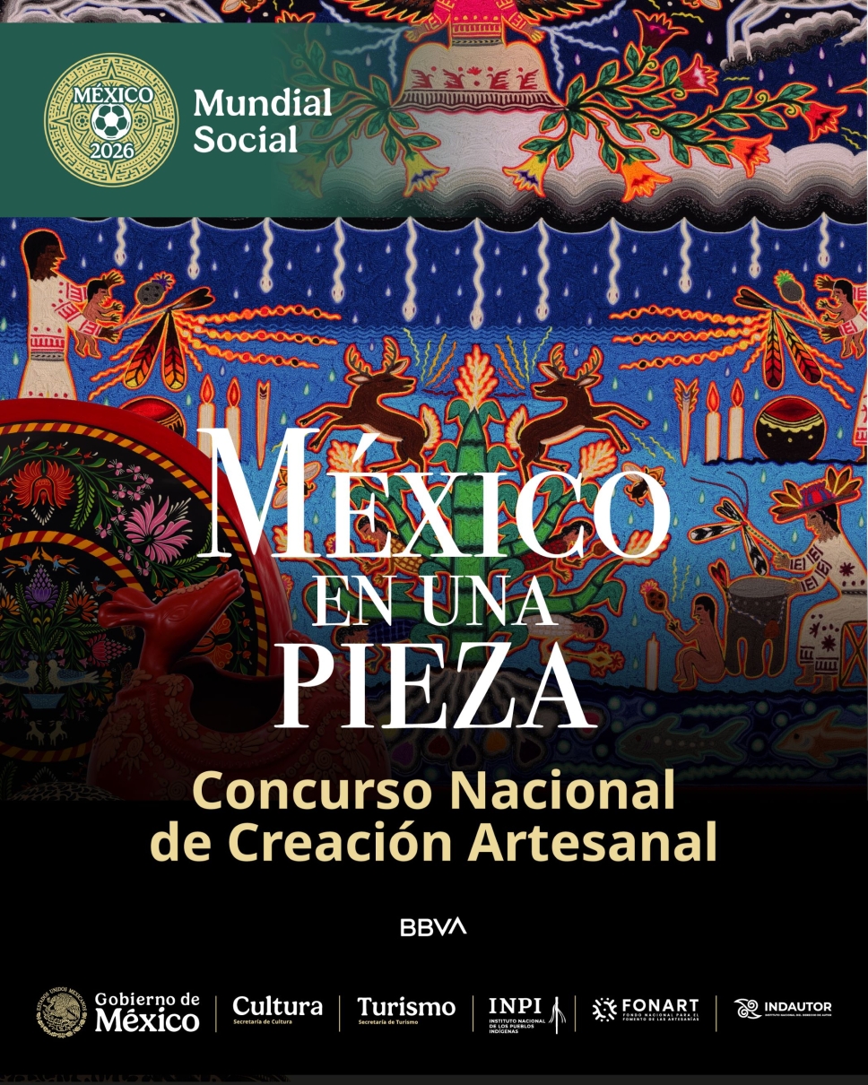 En el marco del próximo Mundial Social 2026, el Gobierno de México ha lanzado una convocatoria histórica para que los colectivos, talleres y agrupaciones de artesanos de todo el país den vida al recuerdo turístico oficial de México. Esta iniciativa es un esfuerzo coordinado entre la Secretaría de Cultura, Turismo, Fonart, INPI e INDAUTOR, con el respaldo de BBVA México.