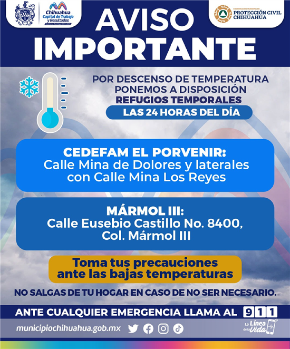 Las autoridades municipales hicieron un llamado a la ciudadanía para colaborar en la protección de personas vulnerables. Solicitaron reportar al 911 cualquier caso de una persona en situación de calle expuesta al frío, para que elementos de la Policía Municipal puedan ofrecer apoyo y trasladarla a un refugio.