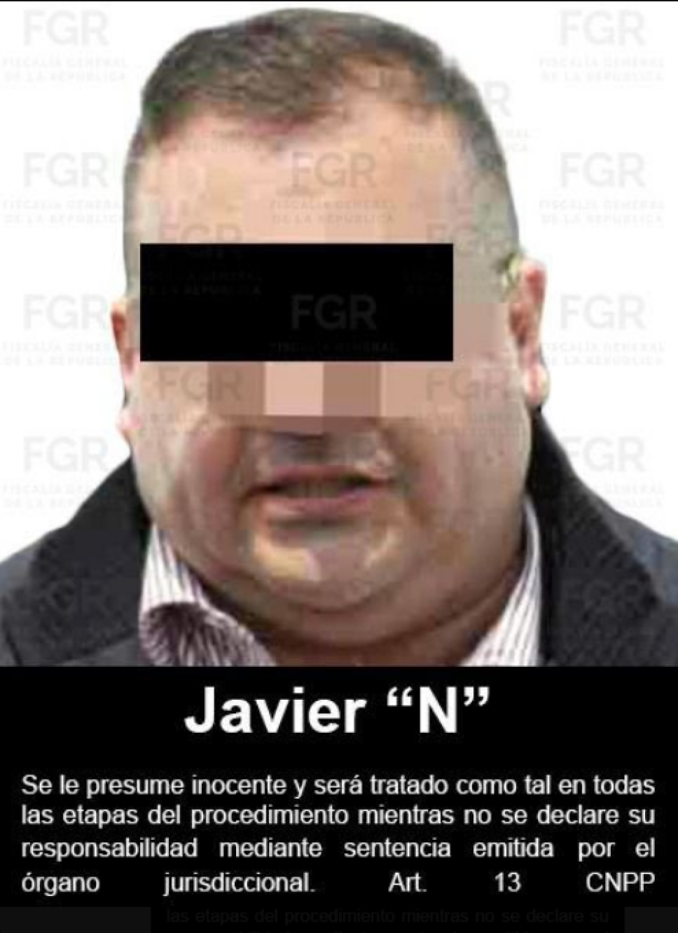 La Fiscalía General de la República (FGR) obtuvo la vinculación a proceso en contra de Javier “N”, por su posible participación en el delito de peculado, además de que se le impuso la medida cautelar de prisión preventiva justificada.