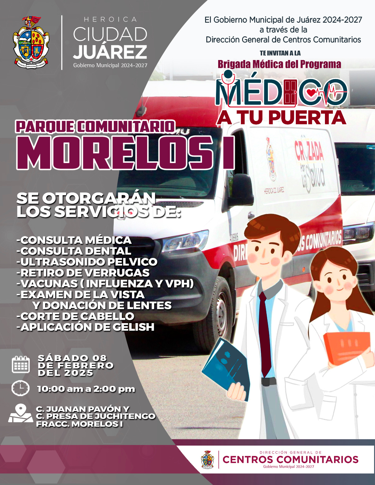 El Gobierno Municipal, a través de la Dirección General de Centros Comunitarios, invita a la comunidad a participar en las jornadas del programa 'Médico a tu Puerta', que brindará atención gratuita en distintos puntos de la ciudad.