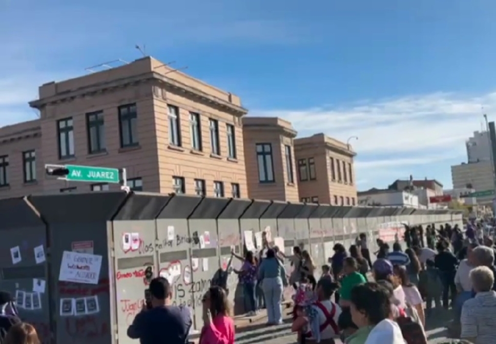 Conforme las manifestantes llegaron al lugar, intervinieron el muro metálico con pintas y pegaron consignas en cartulinas.