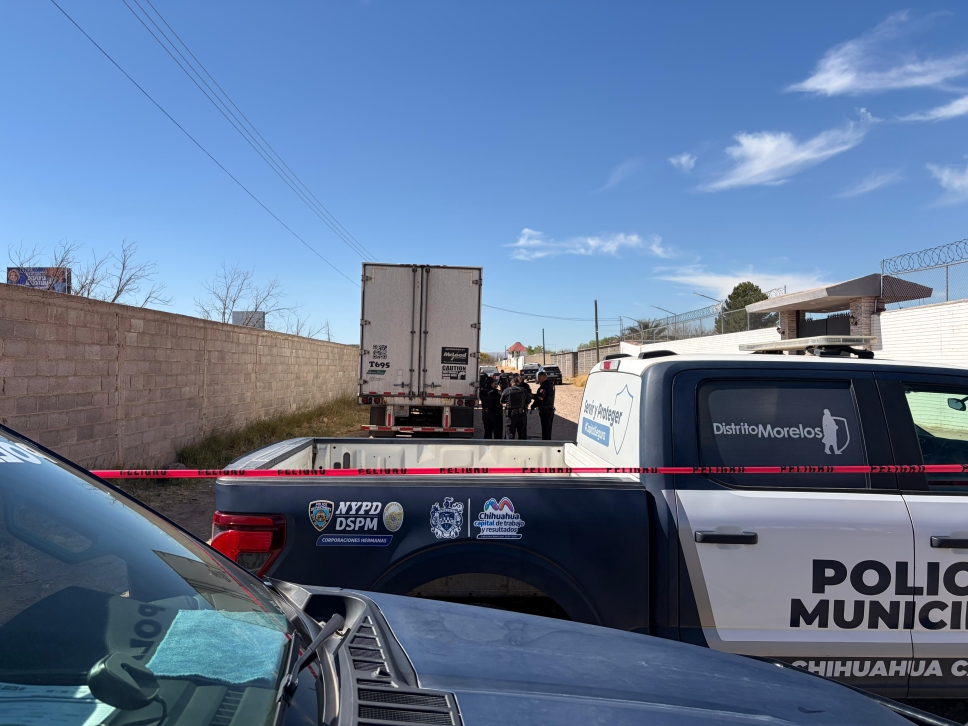 Elementos de la Policía Municipal apoyados por policía Vial, agentes ministeriales y personal del ejército lograron asegurar un tráiler que esta mañana habría sido robado colocado de violencia cuando circulaba sobre la carretera Chihuahua a Aldama.