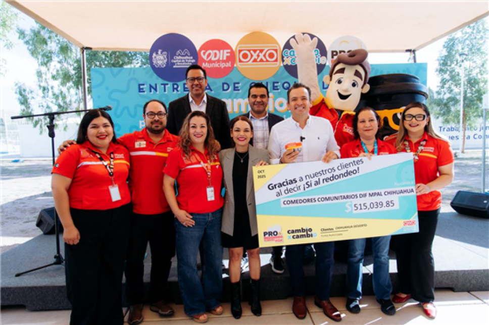 Miguel Montes, gerente general de Recursos Humanos de OXXO, recordó que el programa “Cambio x Cambio” nació en 2002 y se ha consolidado como una herramienta efectiva de apoyo. Montes resaltó que este cheque refleja la unión y solidaridad de varios municipios, incluyendo Delicias, Aldama, Ojinaga y Jiménez, que se sumaron a la causa para "transformar vidas".