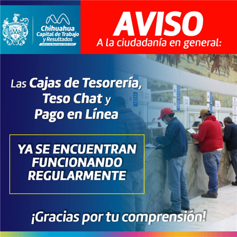 Autoridades municipales confirmaron que las cajas físicas reanudaron actividades, así como los pagos en línea del Predial a través del Teso Chat y la página oficial del Gobierno Municipal. También quedaron restablecidos los cobros que se realizan en tiendas Smart y Alsuper, lo que permite a los contribuyentes realizar sus trámites sin contratiempos.