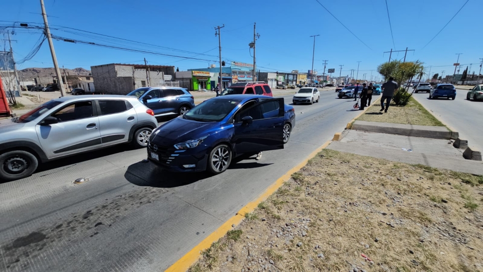 Un fatídico descuido estuvo a punto de terminar en tragedia la tarde de este viernes a la altura de la calle Mina Lluvia de Oro. Un niño de 9 años caminaba junto a su abuela e intentaban cruzar la Avenida de las Industrias con dirección al oeste, sin embargo, en un momento de desesperación, el menor se soltó de la mano de la mujer y se lanzó a la zona de rodamiento justo cuando circulaba un vehículo Nissan Versa.