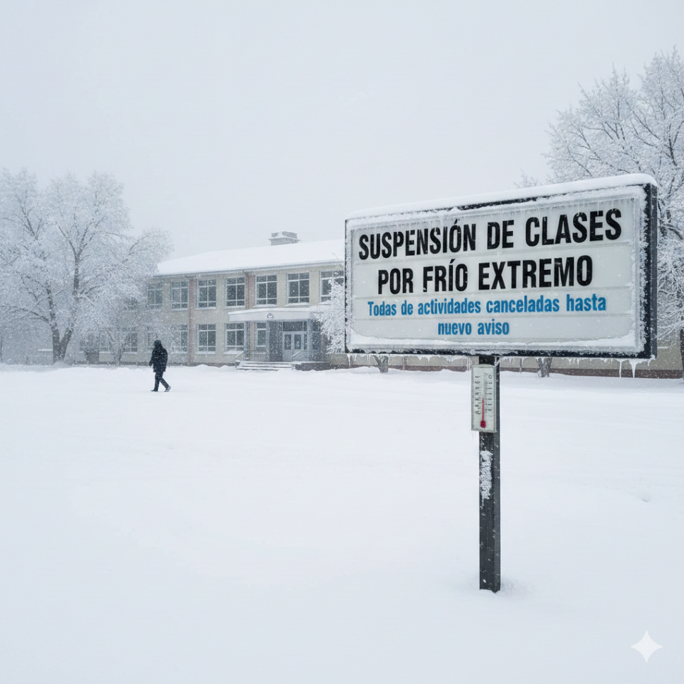 Ante el drástico descenso de temperaturas provocado por el ingreso de la tercera tormenta invernal, la Secretaría de Educación y Deporte (SEyD) del Gobierno del Estado emitió una declaratoria oficial de suspensión de clases presenciales en el nivel de Educación Básica, los días lunes 26 y martes 27 de enero, estableciendo la modalidad a distancia como medida preventiva.