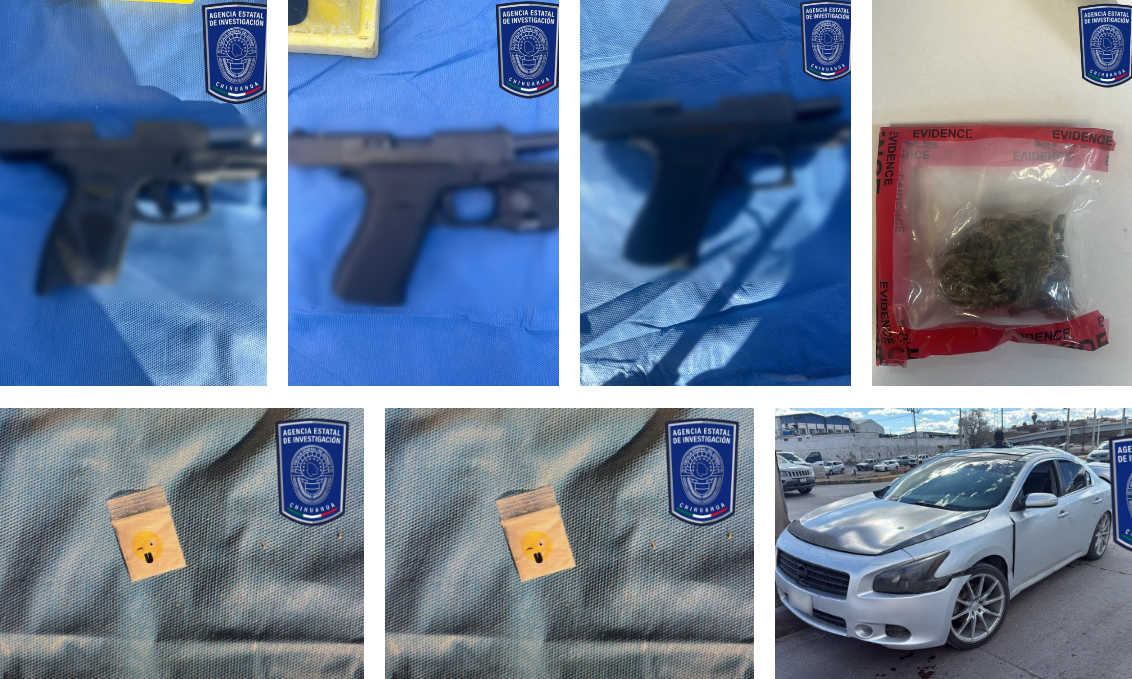 Mediante el uso de cámaras de videovigilancia de la DSPM, los presuntos responsables fueron detectados y alcanzados. Durante la revisión, se les aseguró droga, además de localizar en el vehículo tres armas de fuego tipo pistola, cargadores, cartuchos útiles y casquillos percutidos.