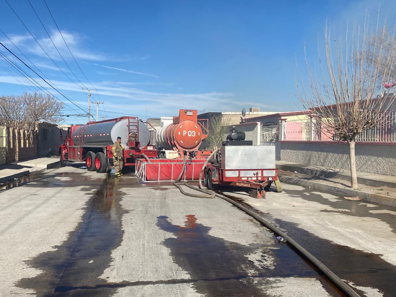 Para sofocar la emergencia, se desplegó un imponente operativo que incluyó las máquinas 10, 18, 16, 24 y 21, además de la Motobomba número 6, pertenecientes al Departamento de Bomberos y Rescate Municipal. Dada la magnitud del peligro, también se enviaron dos ambulancias al lugar como medida preventiva para atender posibles intoxicaciones o quemaduras, mientras los elementos trabajaban a marchas forzadas para cercar el área y evitar que el fuego se propagara.