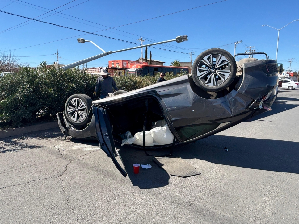Los hechos ocurrieron en la vialidad Sosa Vera, a la altura del fraccionamiento Villa del Real, cuando el conductor de un Honda Civic 2017 sufrió una crisis debido a la diabetes que padece. El hombre perdió el sentido al volante en el cruce con la avenida De los Portales, lo que provocó que el automóvil se proyectara contra una luminaria hasta derribarla y terminar volcado sobre la cinta asfáltica.